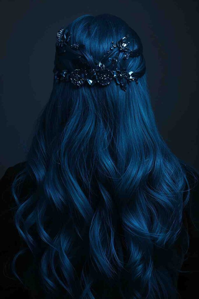 Deep midnight blue hair exudes mystery and elegance, perfect for gothic queens or mermaids.