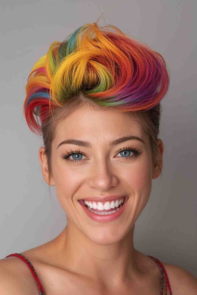 Why pick one color when you can rock them all? A rainbow hairstyle is vibrant, playful, and totally unexpected.