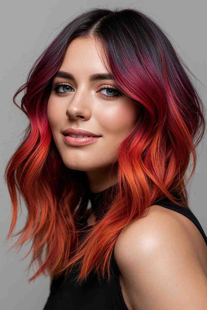 Blending two bold shades, like red and black or purple and orange, creates a dramatic ombré effect.