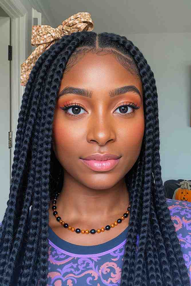 If you have box braids, you can instantly transform your look with themed accessories like beads, ribbons, or temporary color.