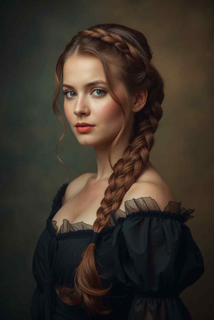 A simple side braid swept over one shoulder creates instant drama and elegance. It’s ideal for pirates, witches, or renaissance costumes.