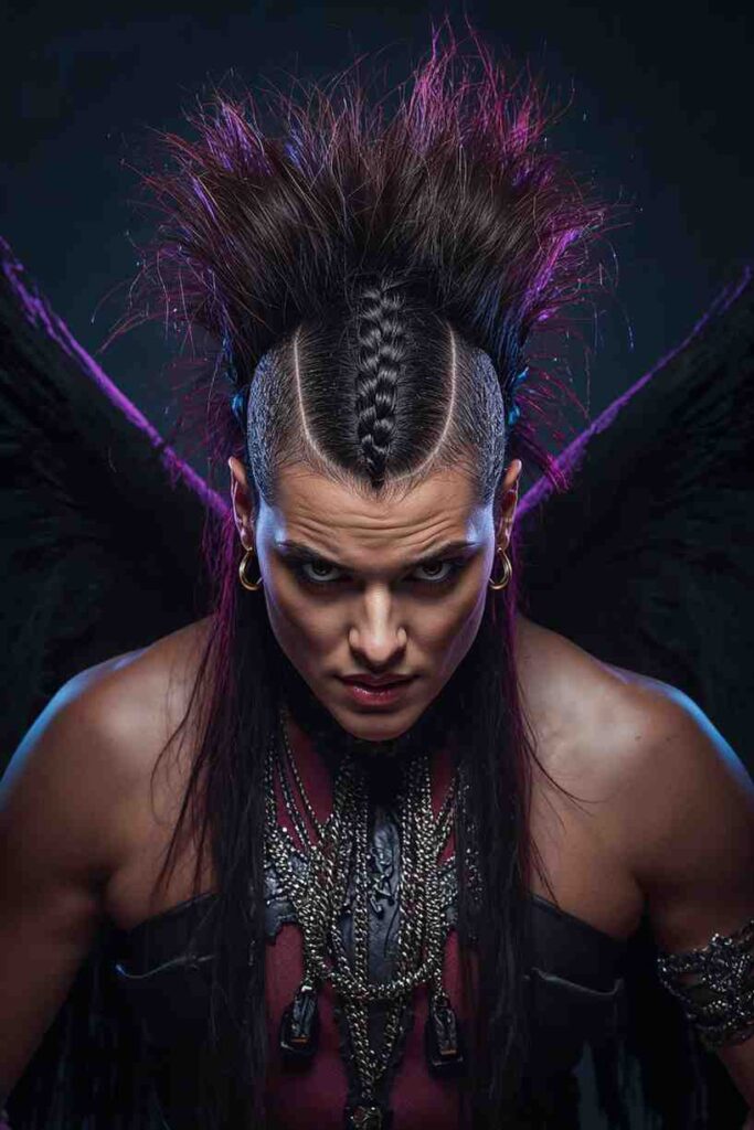 For bold, edgy costumes like warriors, demons, or dark angels, a central Mohawk braid makes a fierce statement.