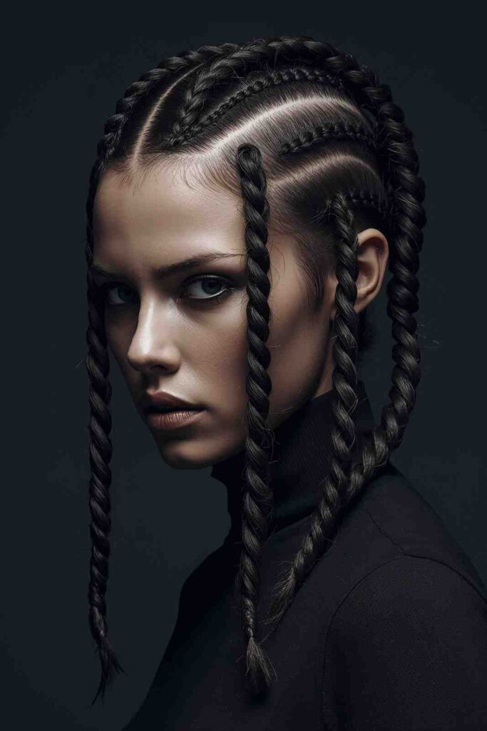Rope braids are sleek, quick, and perfect for futuristic or devilish looks. The twisted effect gives a structured yet dramatic aesthetic.