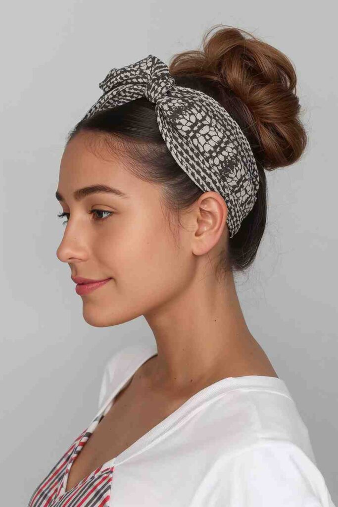 The high bun paired with a stylish headband blends elegance with playfulness. It’s perfect for parties, picnics, or casual outings when you want to look neat yet trendy.