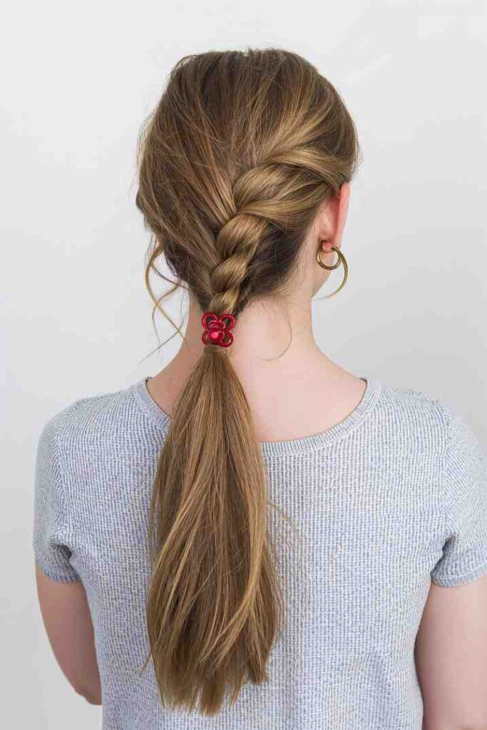 The rope braid ponytail gives a neat, polished twist to a standard ponytail. It’s sleek, stylish, and adds preppy texture while being easy to do. Great for school, work, or weekend outings.