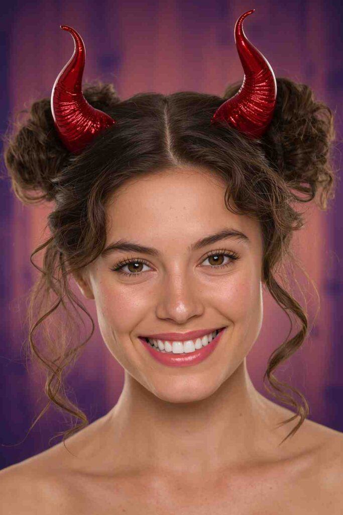 Clip-on devil horns make any hairstyle instantly Halloween-ready. Whether on buns, braids, or loose curls, they add a mischievous flair.