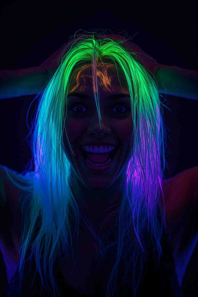 Glow-in-the-dark spray gives your hair an eerie glow that looks incredible at night parties.