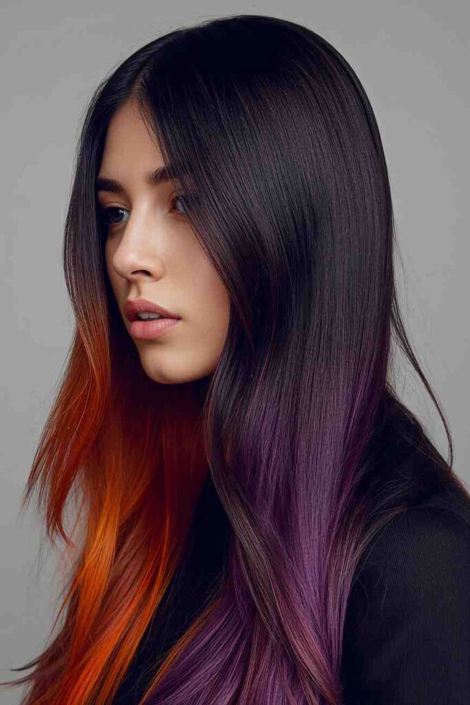 Spray the ends of your hair with temporary ombre colors like orange, purple, or black for a subtle yet striking effect.