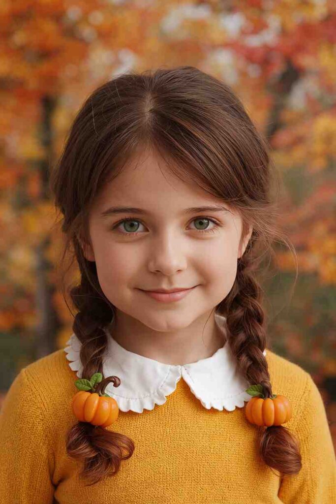 Attach small pumpkin clips to braids, buns, or ponytails for a festive but cute Halloween hairstyle.