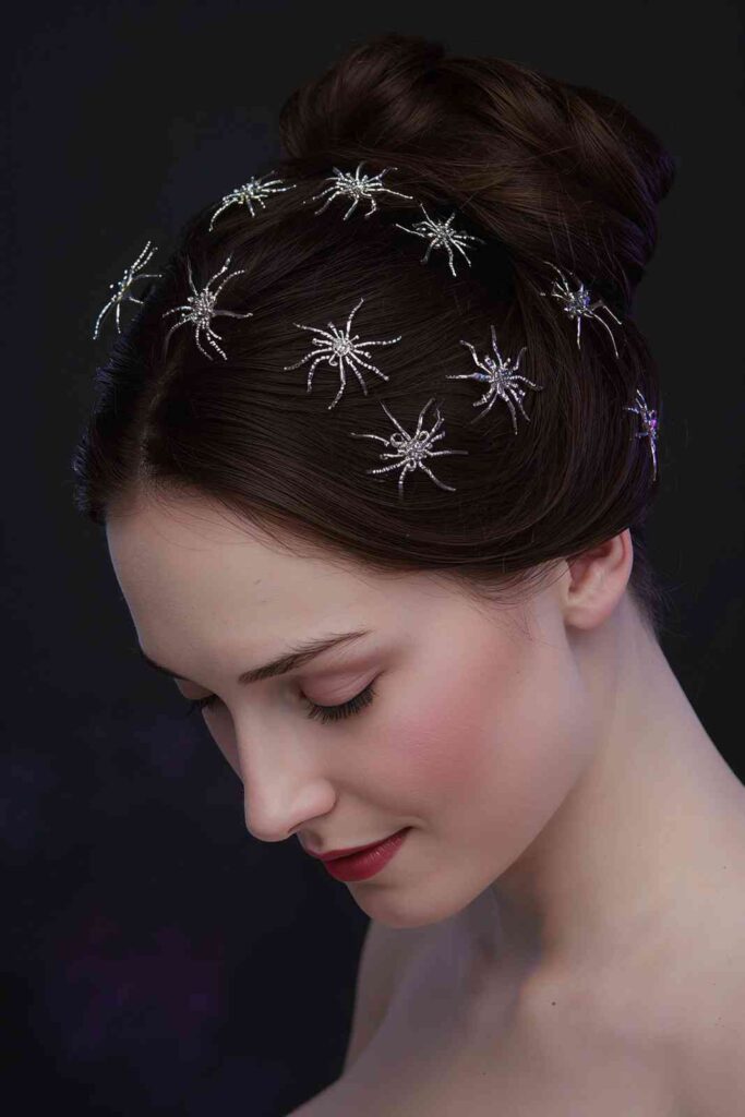Use spider clips to elevate a simple bun or ponytail into a spooky masterpiece.