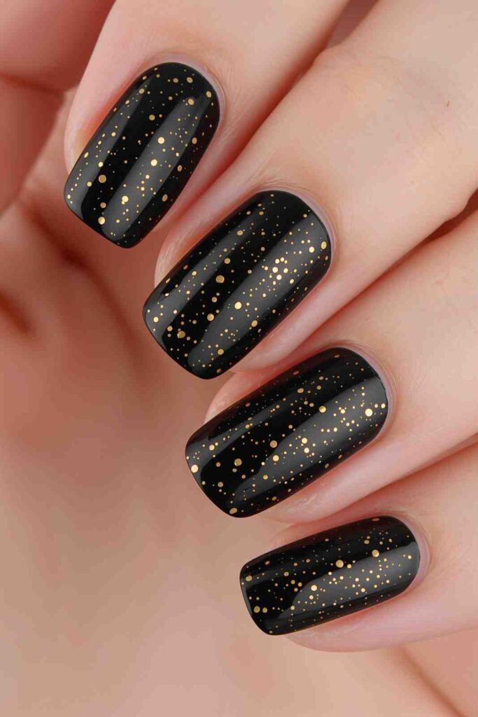 15. Black Nails with Gold Dots