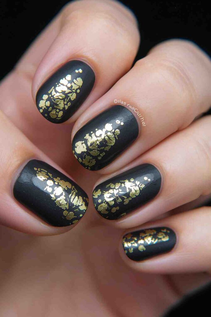 Apply gold foil on top of a glossy or matte black base for a luxe, textured finish. The foil adds a touch of opulence that stands out without being over-the-top.