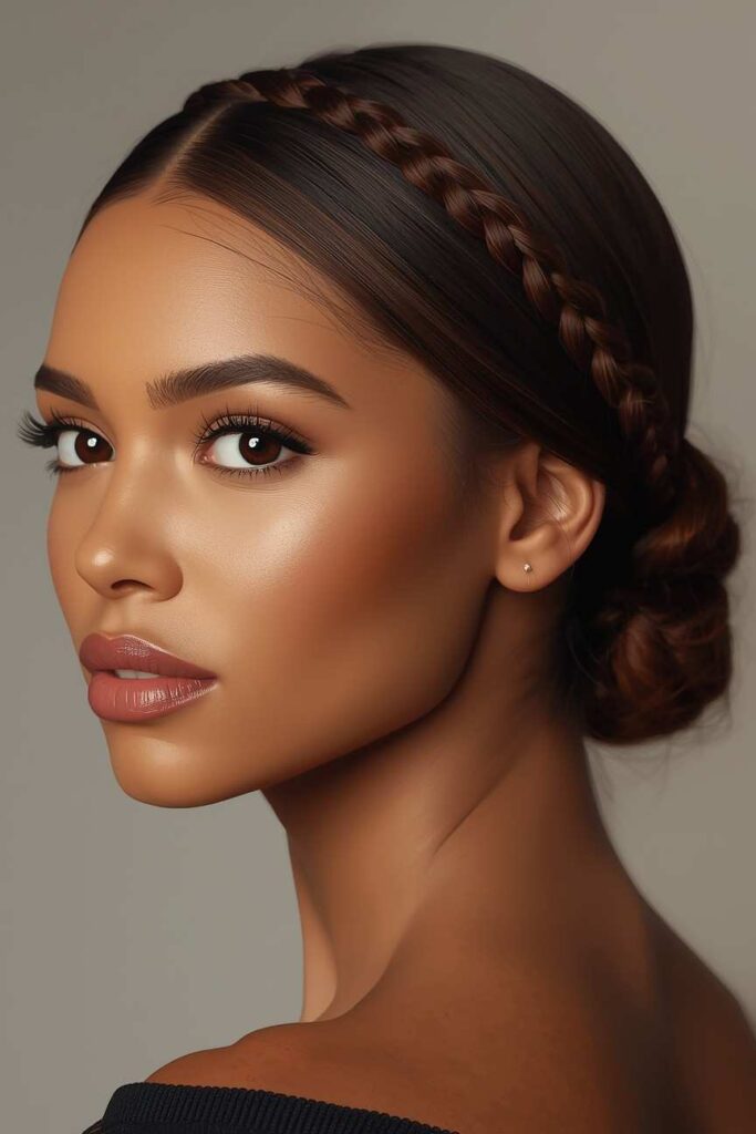 The braided low bun blends structure, texture, and elegance, making it ideal for December celebrations. The braid adds intricate detail that enhances the bun’s overall look without making it overly complicated.