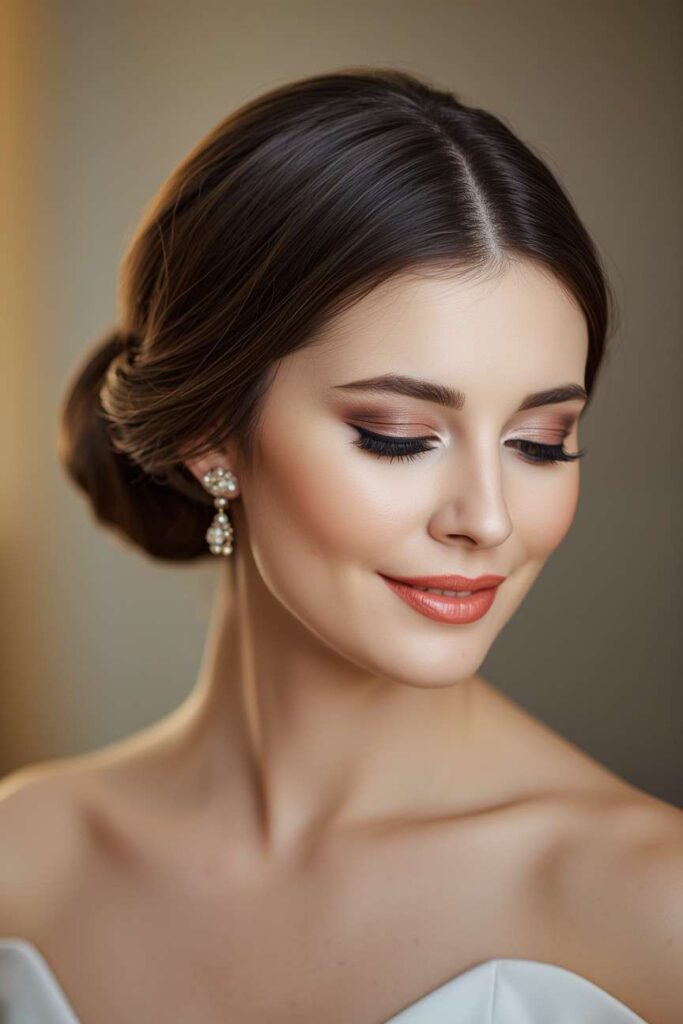 Its simplicity allows your accessories—like pearl earrings or a sparkling necklace—to stand out, making it a reliable choice for any special event. The low placement also works beautifully with coats, shawls, and high-neck winter dresses. Whether you’re heading to a gala or a quiet winter celebration, the low chignon delivers understated sophistication.