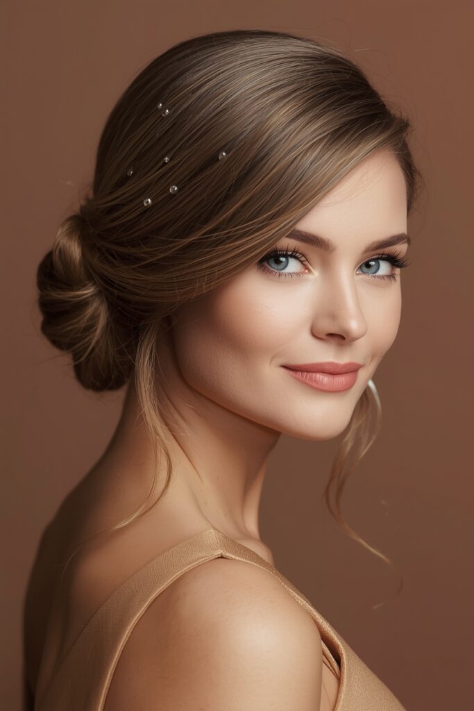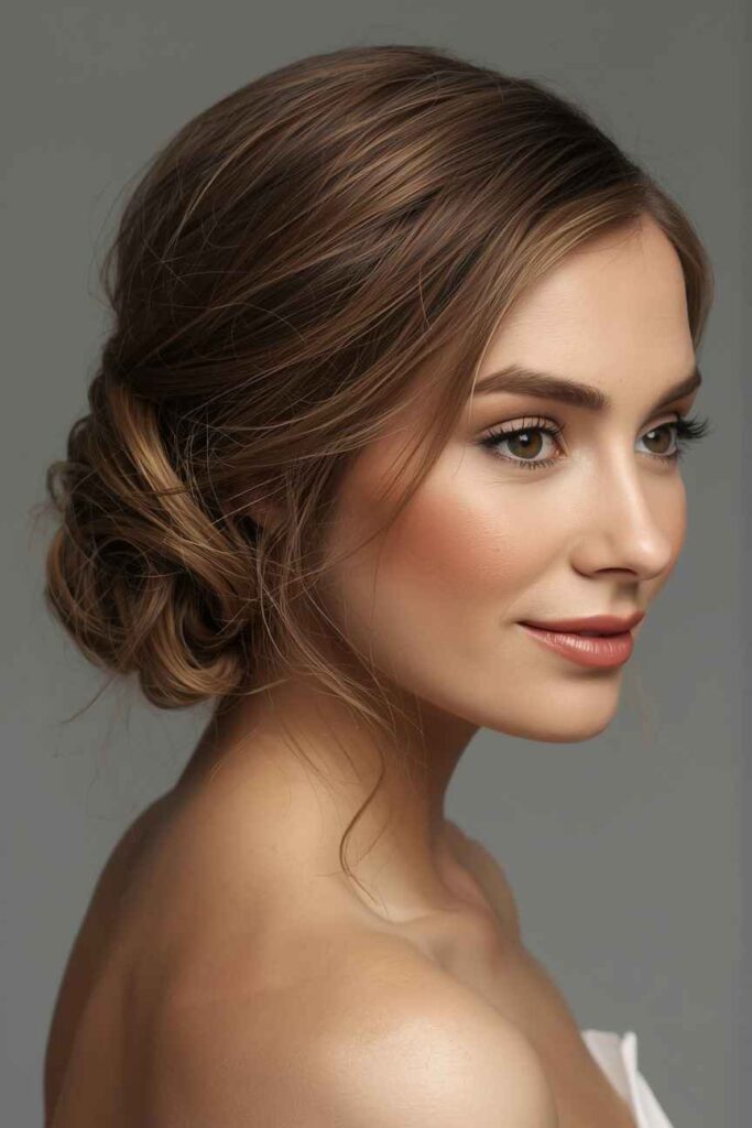 The side-swept bun adds asymmetry and charm, making it a standout December updo for special events. Placed low and to one side, this style frames the face elegantly and creates a flattering silhouette.