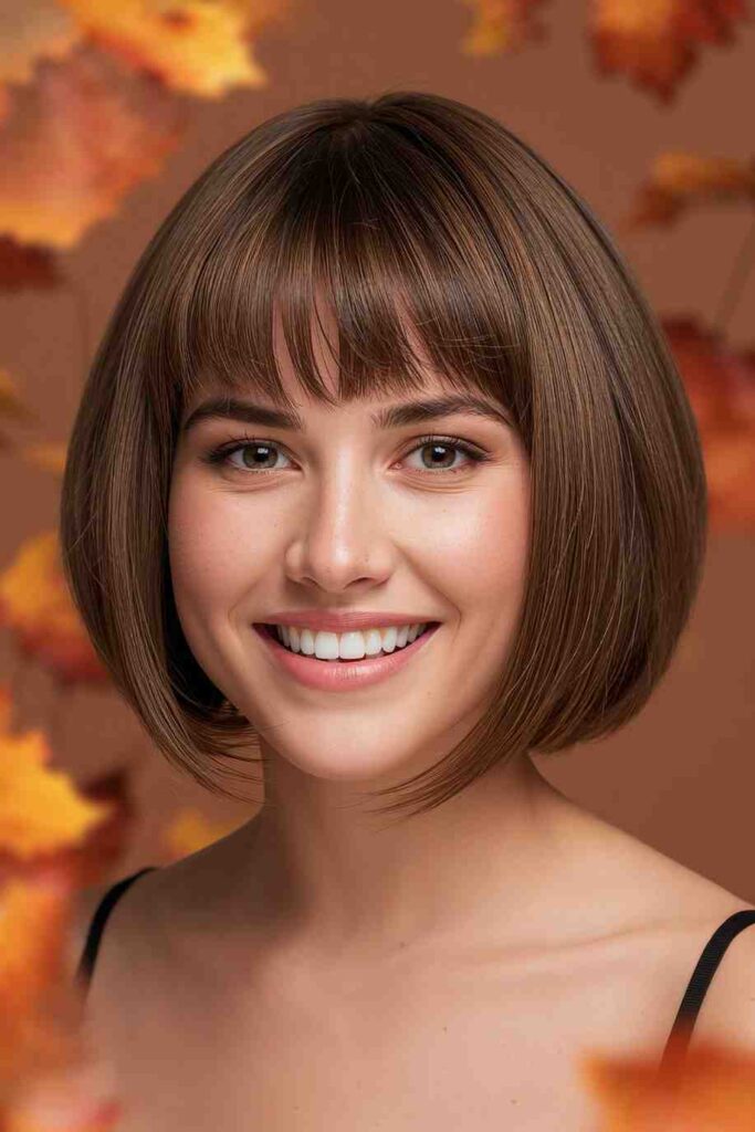 Chin-length bobs are bold, highlighting the jawline while giving a crisp, youthful appearance. This style feels fresh and playful for fall.