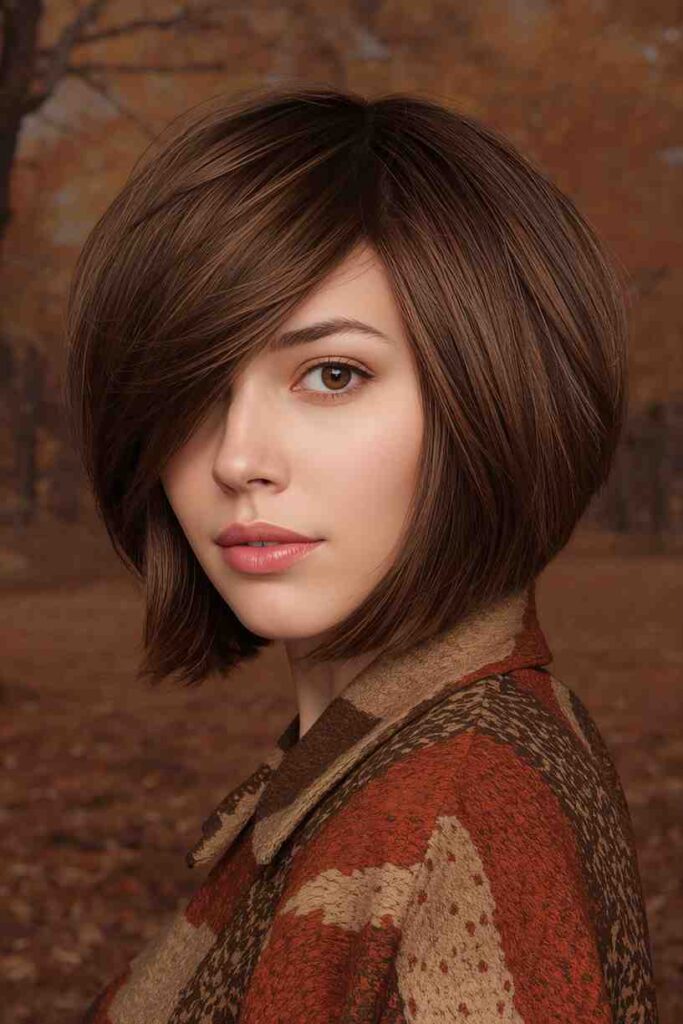 The French bob is shorter, playful, and effortlessly chic. Falling just below the cheekbones, it adds a Parisian flair perfect for autumn fashion. Its slightly undone look gives it a timeless appeal.