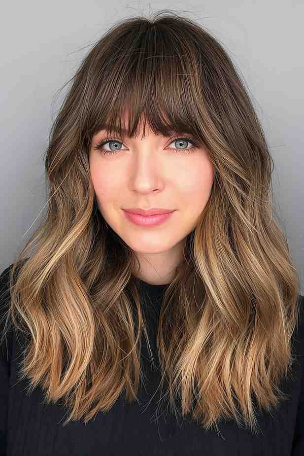 Curtain bangs blended with long layers add softness and style without going too short. They frame the face beautifully while keeping the length versatile. This look screams fall coziness.