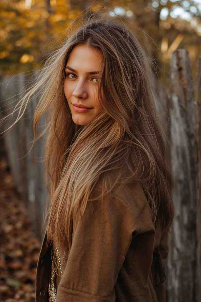 Why Try It: Style with messy waves or braids for that carefree, autumn-inspired finish.