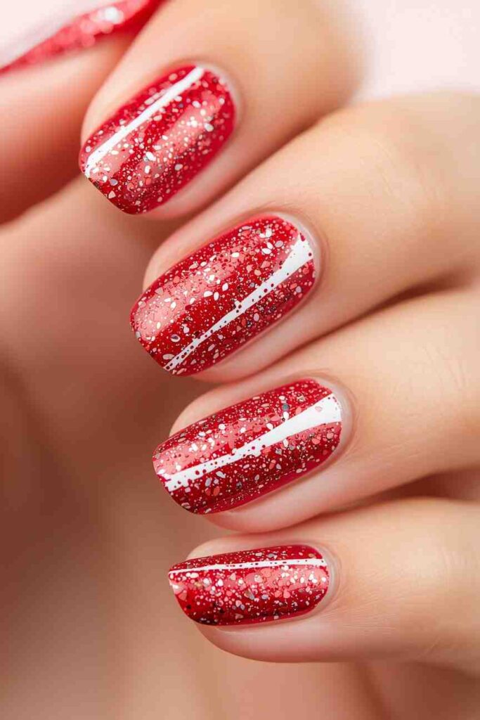 5. Candy Cane Red & White Glitter Nails