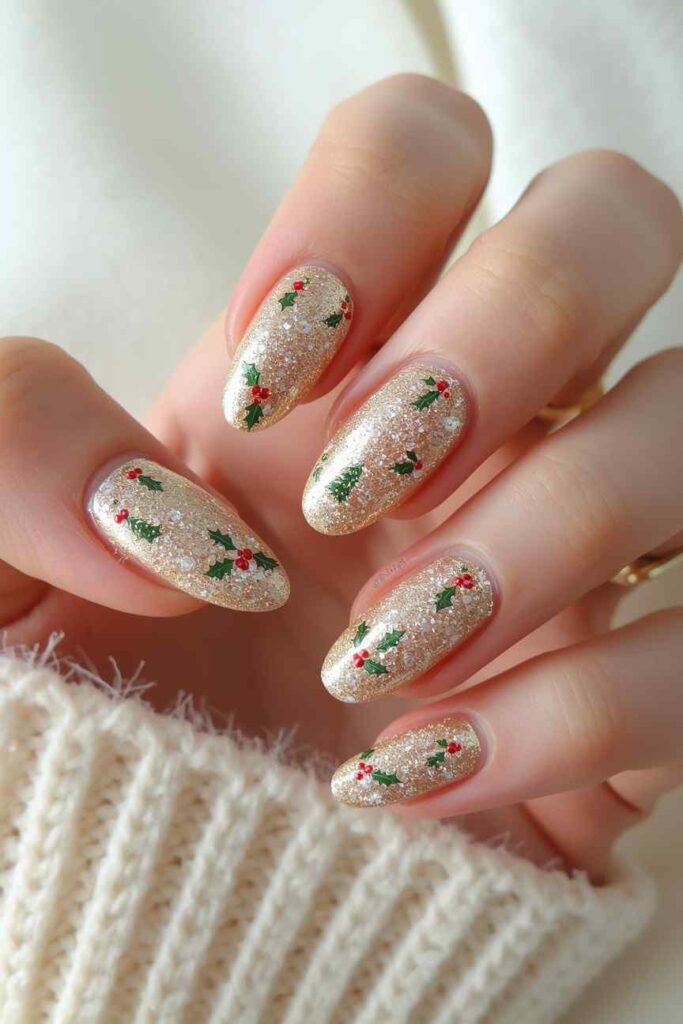 Champagne glitter offers understated elegance with a soft, luminous glow. This shade blends beautifully with nude bases, warm metallics, or creamy whites, making it perfect for chic and minimalistic holiday looks.