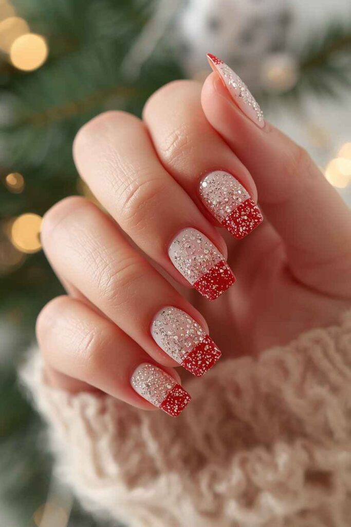 10. Glitter French Tip Christmas Nails