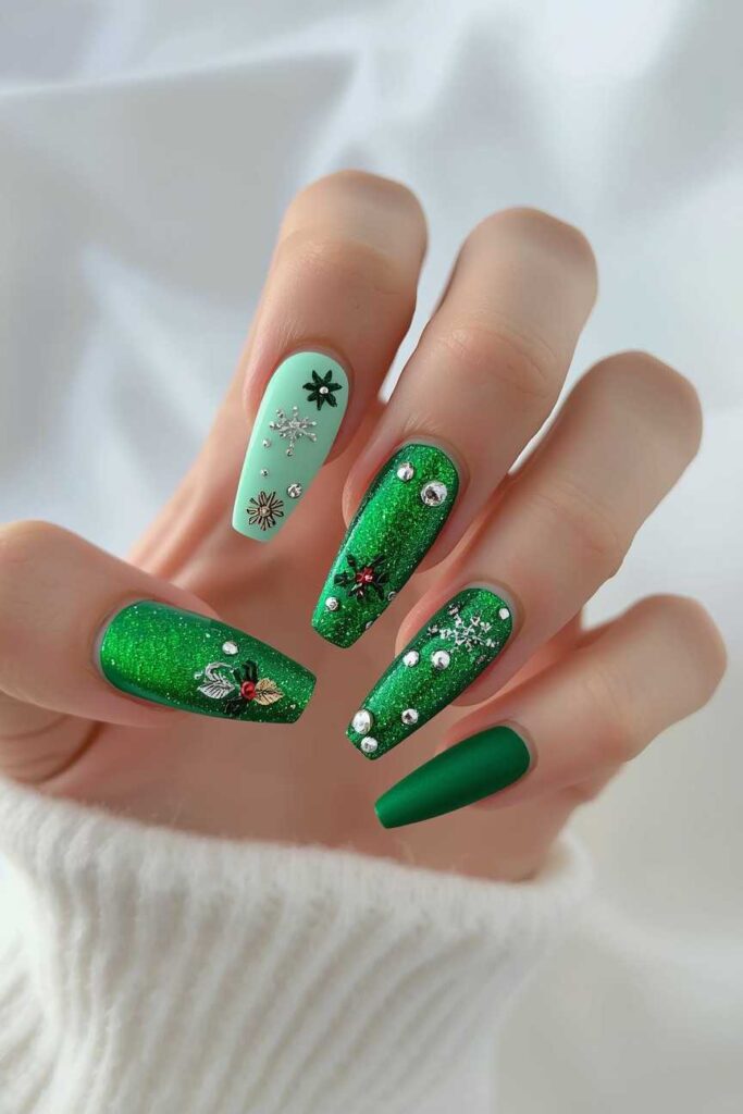4. Green Glitter Christmas Nails