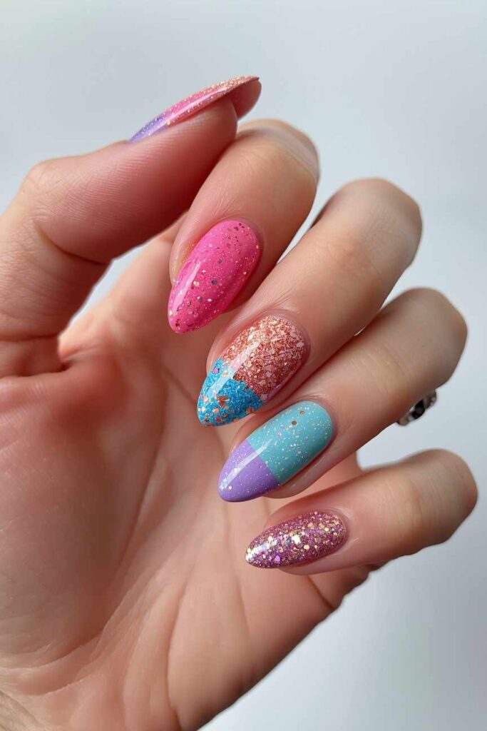 13. Multicolor Glitter Festive Nails