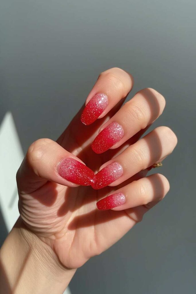 11. Red Glitter Ombré Nails