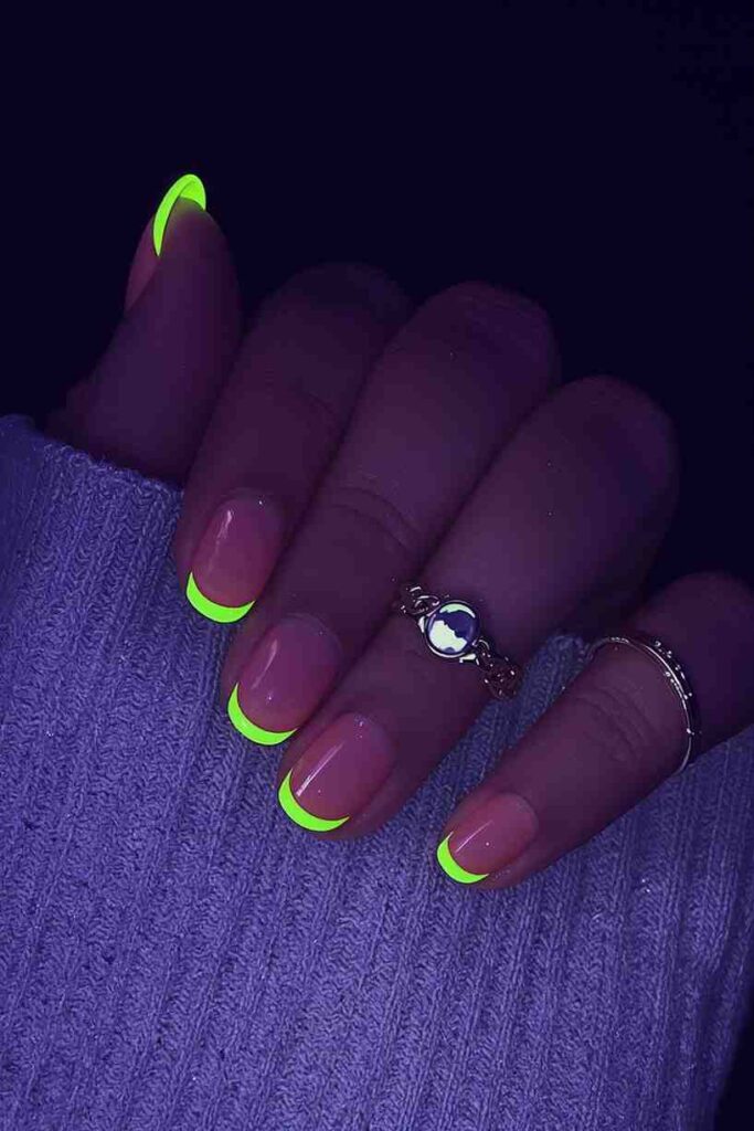 Upgrade your French manicure with glowing neon tips. Whether you choose bright green, orange, or pink, these nails look chic in daylight and otherworldly at night.
