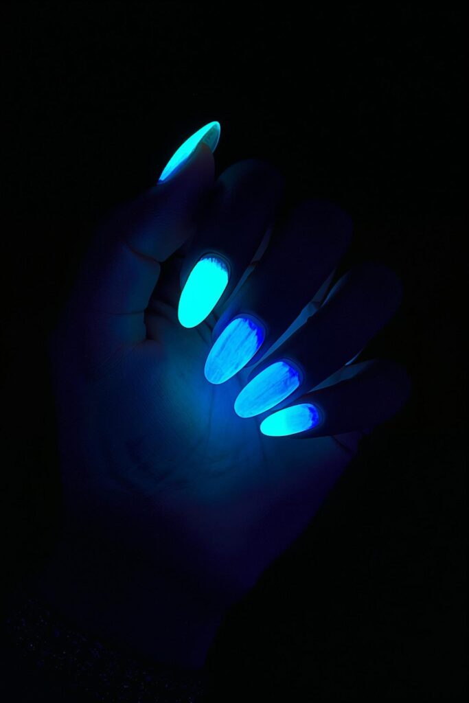 Go all in with a full coat of glow-in-the-dark polish on every nail. It’s simple yet makes a massive impact at night.