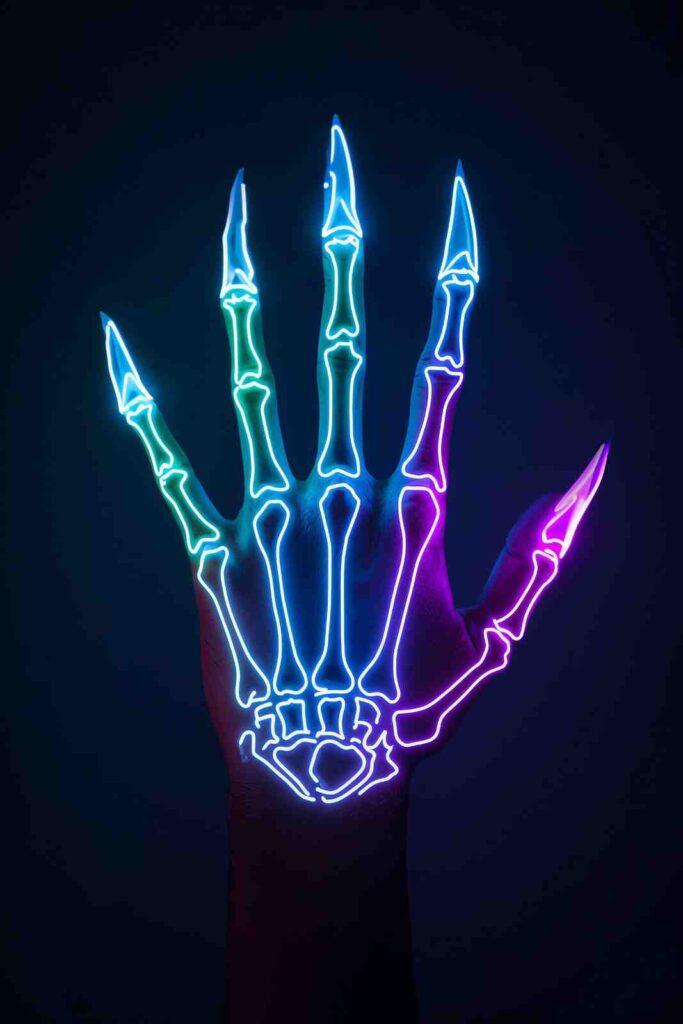 Instead of bones, try glowing outlines of fingers or claws—it’s eerie and super creative.