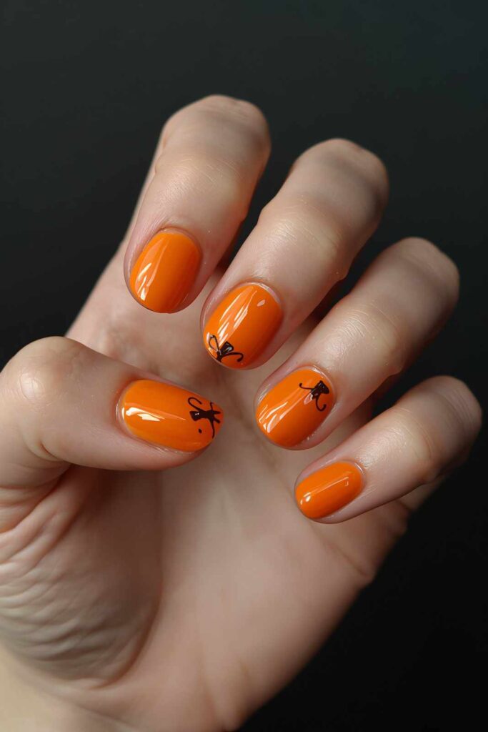 Orange glow polish shaped into mini pumpkins along the tips is cute, classic, and totally Halloween.