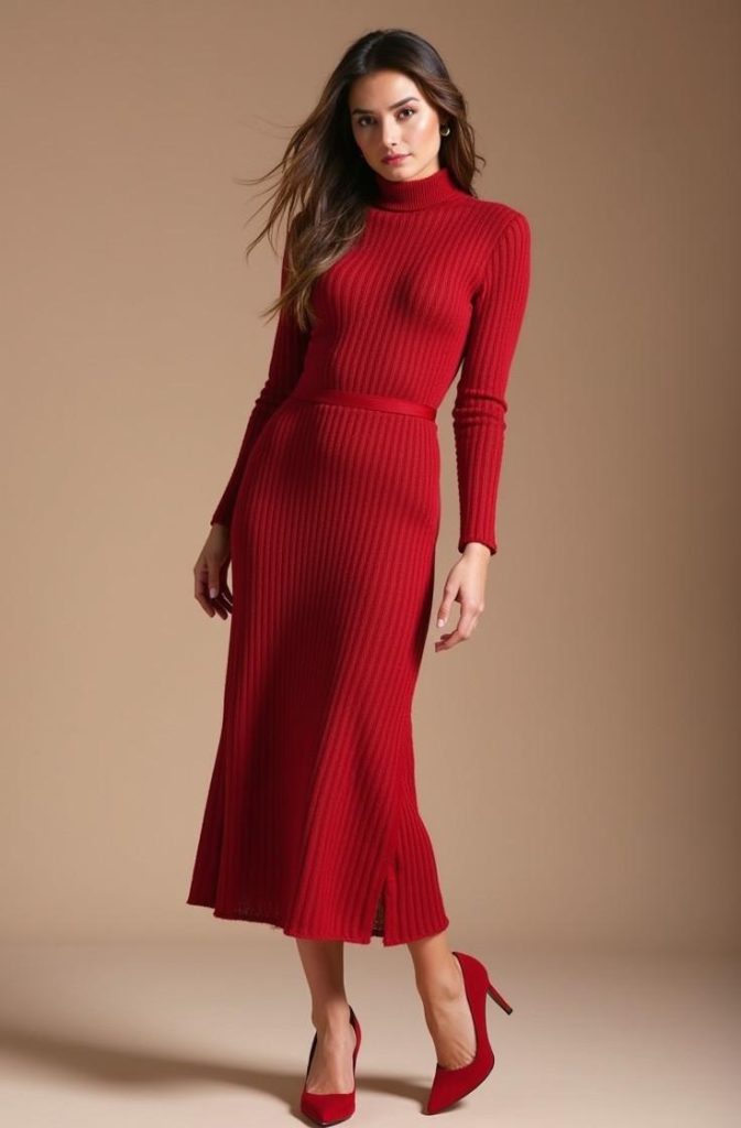 A soft knit midi dress is a perfect blend of romance and comfort for Valentine’s Day. The stretchy fabric gently skims the body without feeling tight, while the midi length adds elegance and warmth.