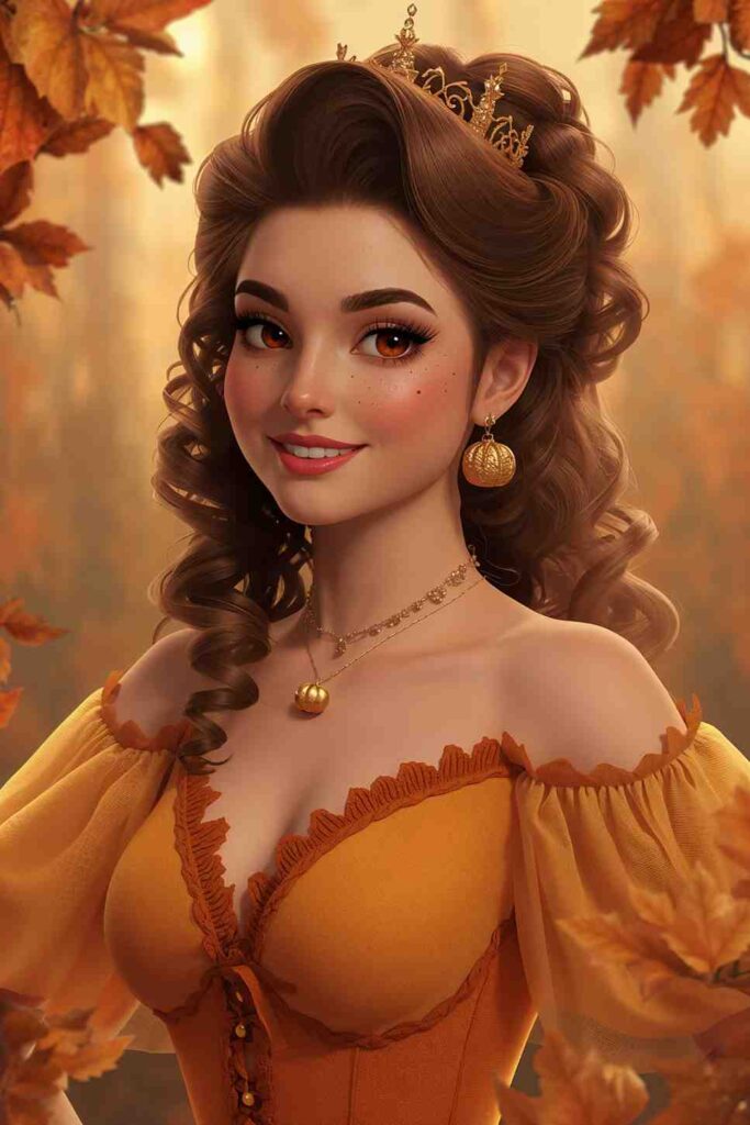 Style suggestions: Style hair in soft curls or a messy bun. Add pumpkin hair clips for a playful touch.