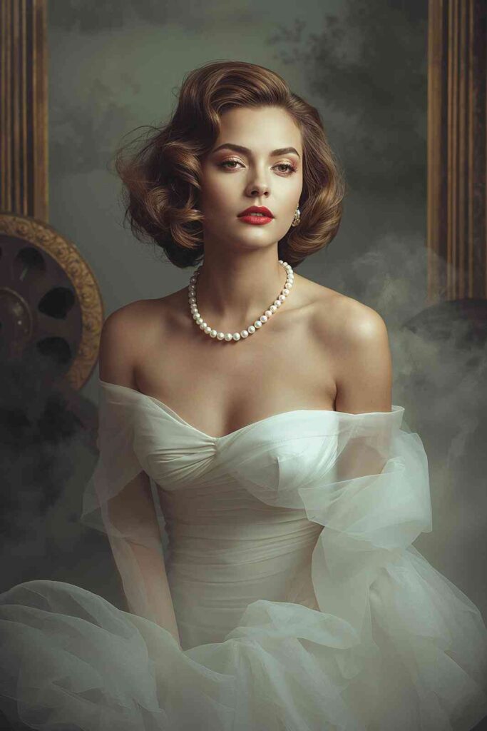 Style suggestions: Soft retro waves or finger curls complete the vintage aesthetic. Add white shimmer makeup for a haunting glow.