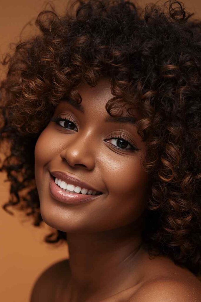 A curly afro with moisture shine celebrates natural texture while embracing winter warmth. This December look enhances curls with definition, hydration, and healthy shine—especially important during colder months.