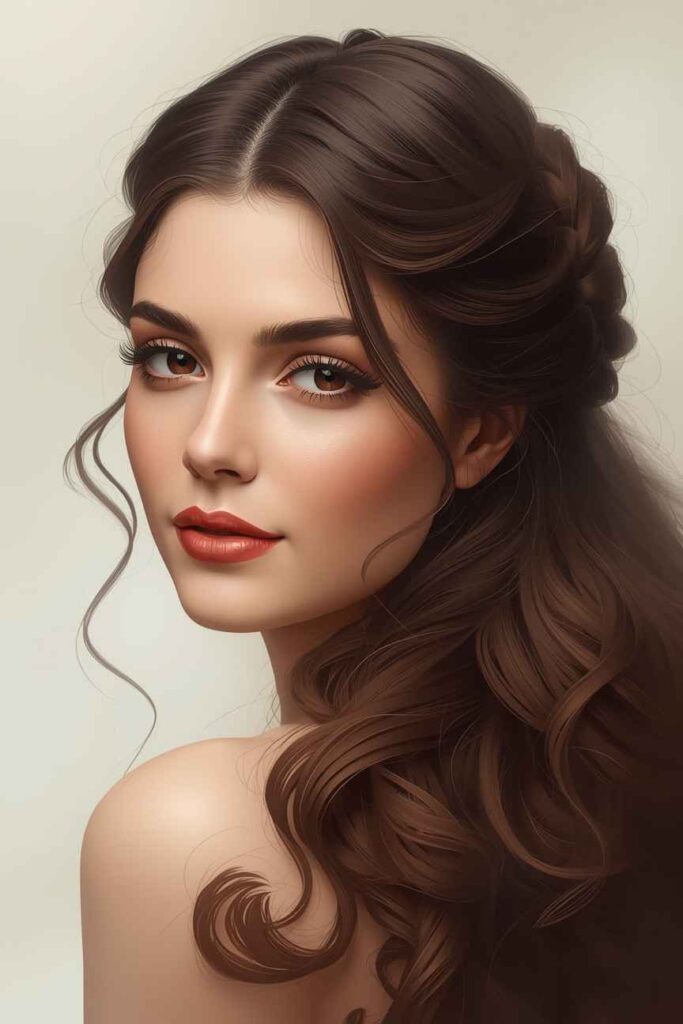 The braided half-up style blends romance with practicality, making it an ideal December hairstyle. The braid adds texture and seasonal charm while keeping hair away from your face. This look works beautifully for holiday events, winter dinners, or festive photoshoots.