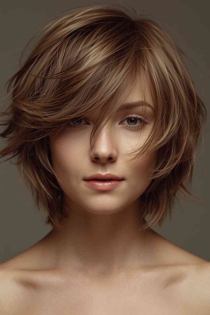 The soft shag adds movement and texture to your December style, making it perfect for winter layering. This hairstyle uses feathered layers to frame the face, giving a cozy, lived-in feel that pairs beautifully with scarves, jackets, and warm knits. It brings youthful energy and easy-going charm while still appearing polished.