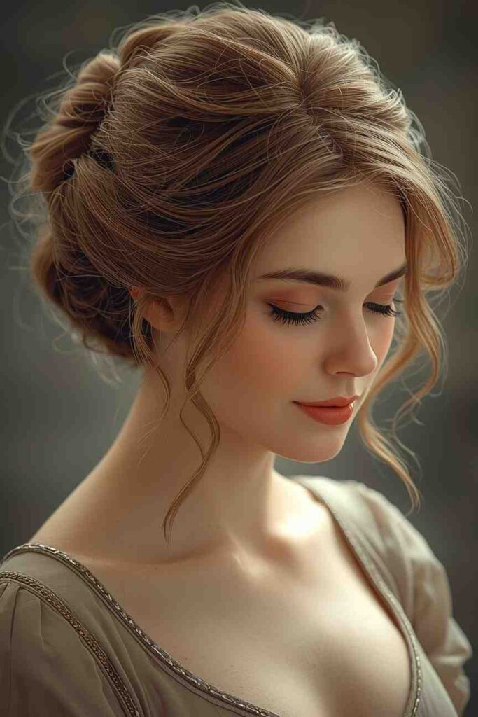 How to Style It: Loosely twist sections, pin gently, and leave soft pieces around the face.