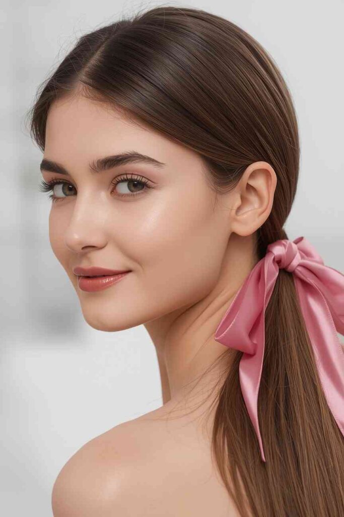 14. Low Ponytail with Ribbon
