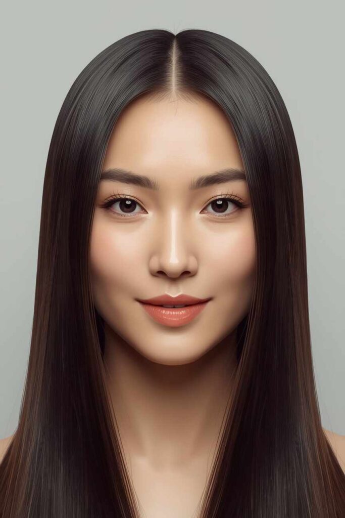 Sleek straight hair with a middle part is a minimal, modern December hairstyle that feels clean and polished. The simplicity of the style highlights facial symmetry and pairs well with winter fashion. Whether worn long or mid-length, this sleek look enhances your winter outfits with sophistication.
