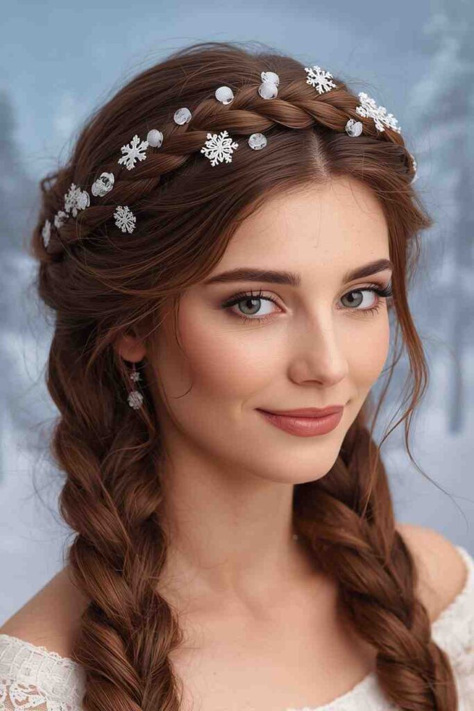 Whether you pair it with cozy sweaters or glittery dresses, the braided crown enhances your seasonal style. This hairstyle works especially well on medium to long hair and adds a magical touch to holiday evenings.