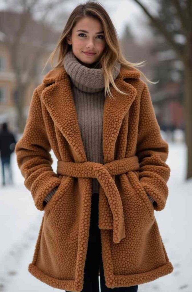 5. Belted Teddy Coat Warmth