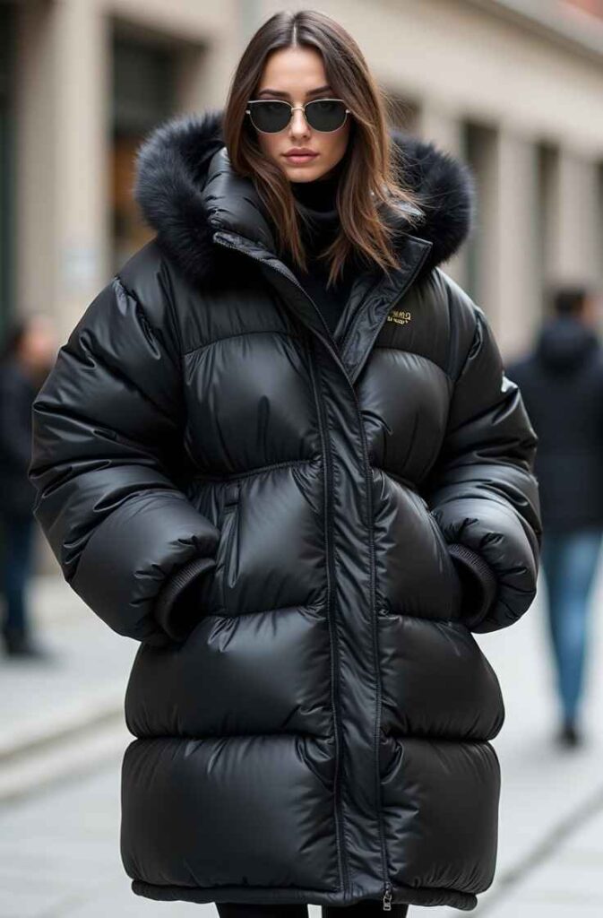 An oversized puffer coat offers the perfect blend of warmth and streetwear attitude. Its voluminous shape creates a bold winter silhouette that stands out while keeping you exceptionally cozy. Whether in matte black, metallic silver, or bold colors, oversized puffers add personality and practicality.