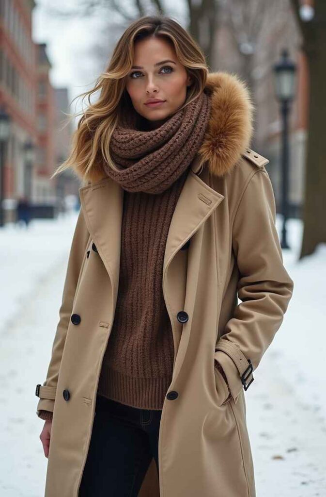 8. Trench Coat with Winter Layers