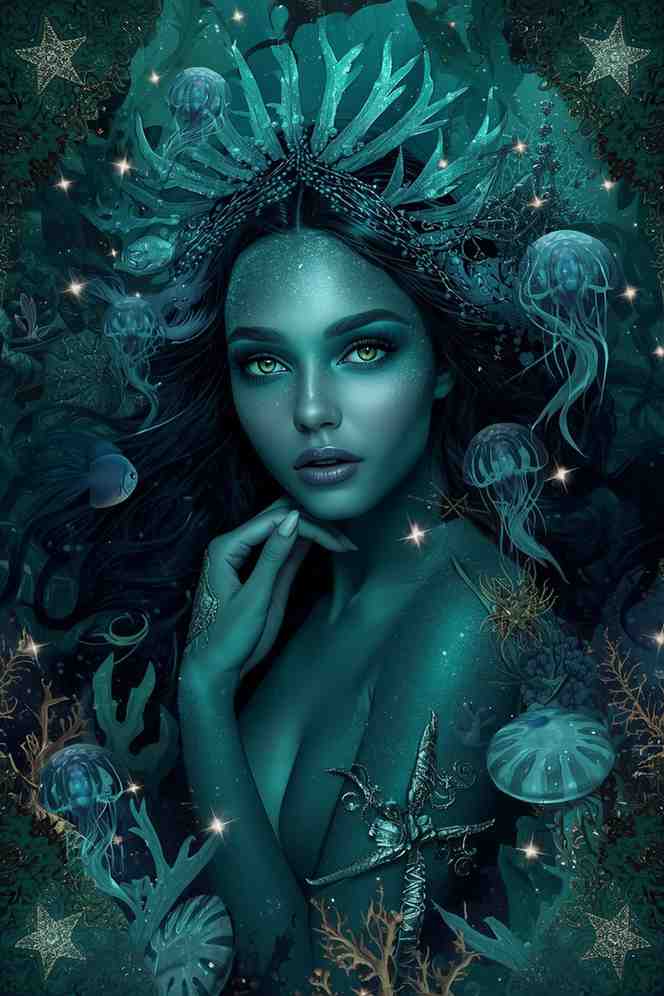 Dive into a deep-sea fantasy with teal and navy shades. Use shimmery blue shadows on your lids, contour with cool tones, and add scales using a fishnet stencil and metallic powder. Finish with iridescent gloss and silver highlighter. This oceanic-inspired look combines mystery and allure, making you look like a sea enchantress straight from a mythical dream.