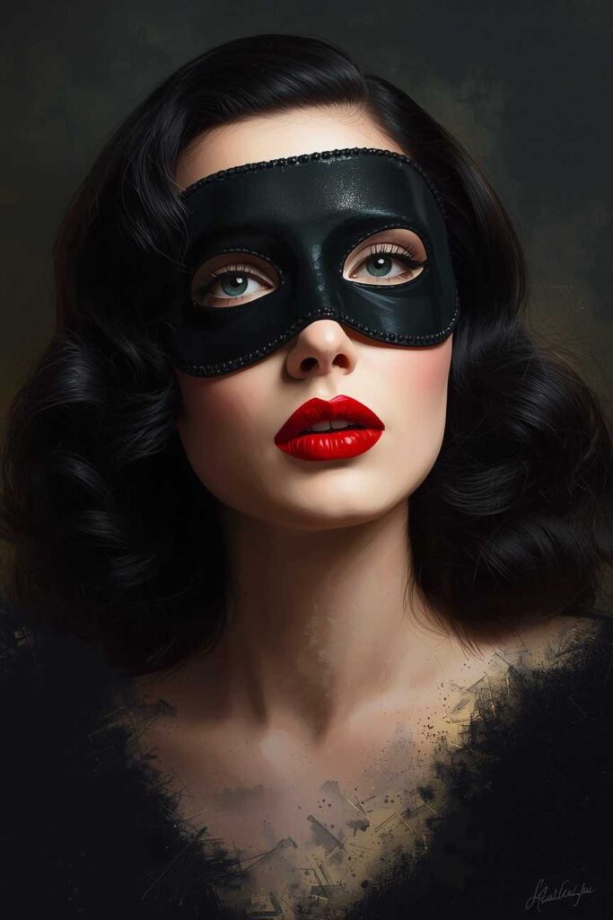 Inspired by vintage noir films, this look emphasizes deep contrast. Use black eyeliner to draw dramatic eyes, paired with matte foundation and ruby red lips. Add subtle gray contour for depth. This bold, shadowy style creates an air of old-Hollywood mystery — a timeless choice for a luxurious Halloween soirée where every glance leaves an impression.