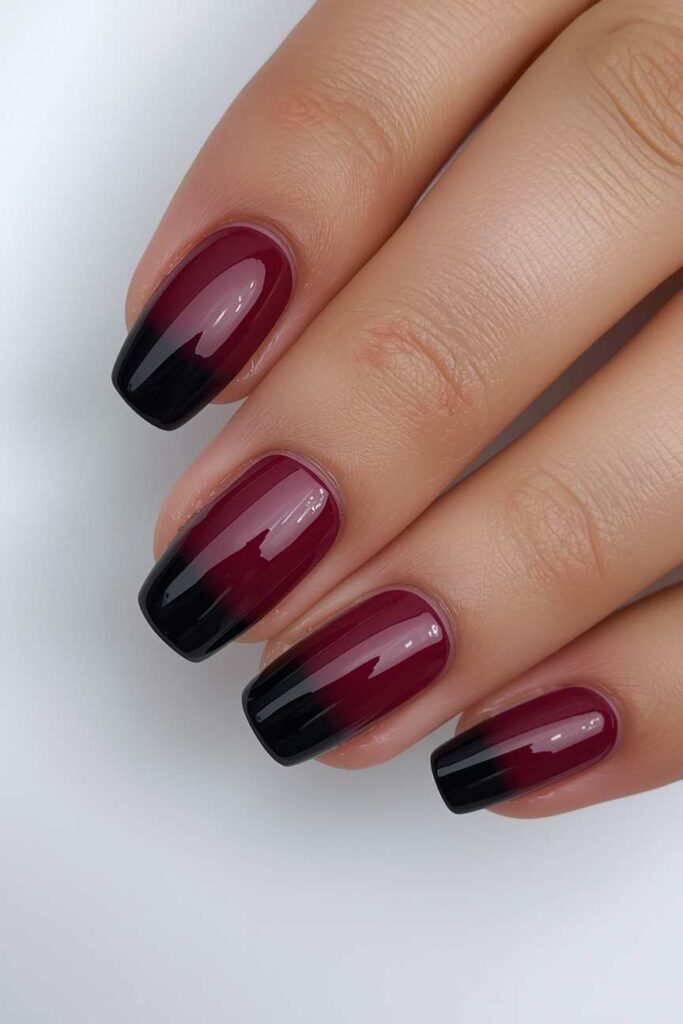 Blending burgundy and black creates a moody gradient perfect for fall. Add subtle shimmer for depth or keep it matte for dramatic elegance. This design works well for evening wear, offering a mysterious, romantic vibe.