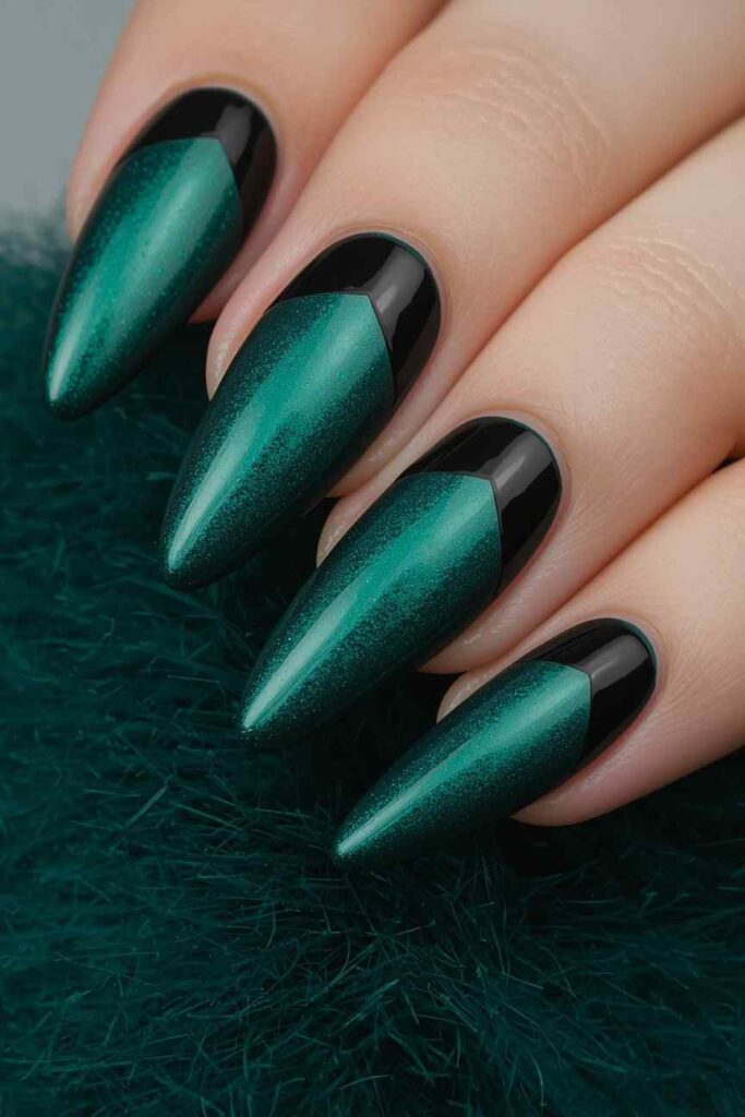 A deep forest green base with black tips or patterns combines earthy fall tones with gothic elegance. This color pairing feels moody yet versatile, ideal for seasonal wear. Add matte finishes for extra edge and sophistication.